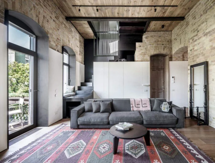 Лофт и индустриальные мотивы никуда не делись, но стали более утончёнными. Это стиль для смелых: открытые коммуникации, бетон, металл, кирпичная кладка, геометричные принты.