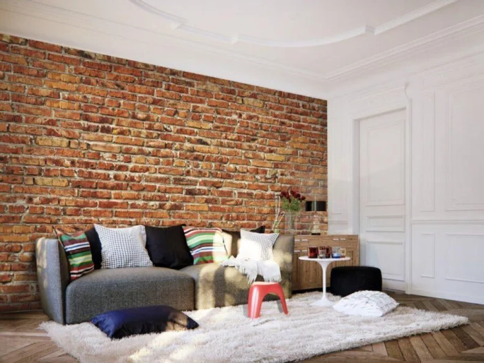 Голая кирпичная кладка – вечный символ лофта и бунтарского духа. Её магия в контрасте: грубая, несовершенная фактура каждого «кирпичика» и чёткая, повторяющаяся форма.