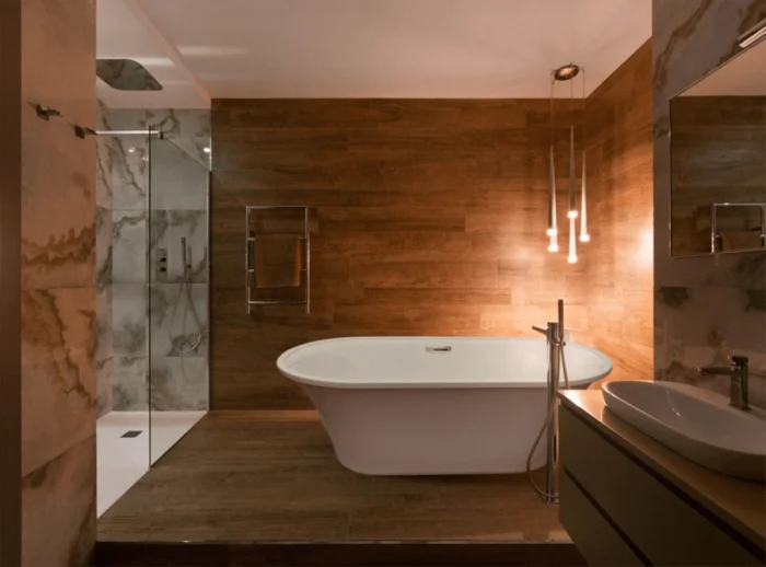 Идеальный сценарий для просторной ванной — иметь и душ для быстрых процедур, и ванну для долгого отдыха.