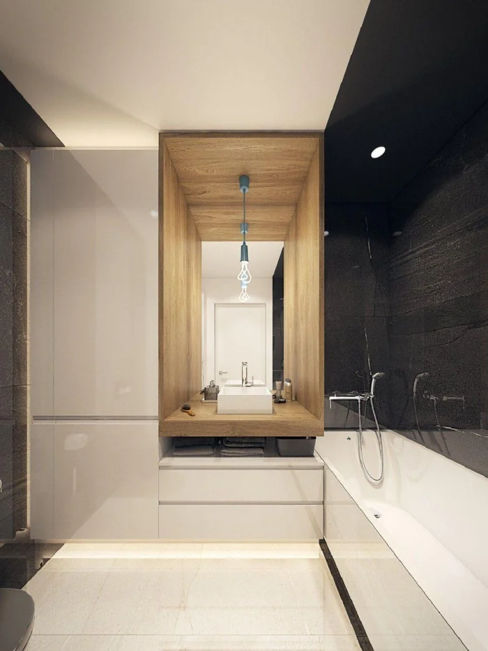 Шкафчики и тумбы должны быть максимально вместительными, чтобы спрятать всё, что портит вид: баночки, тюбики, запасные полотенца. Аккуратность — новый тренд. Особенно популярны конструкции на изящных ножках: они не «съедают» пространство, а кажется, будто парят над полом.