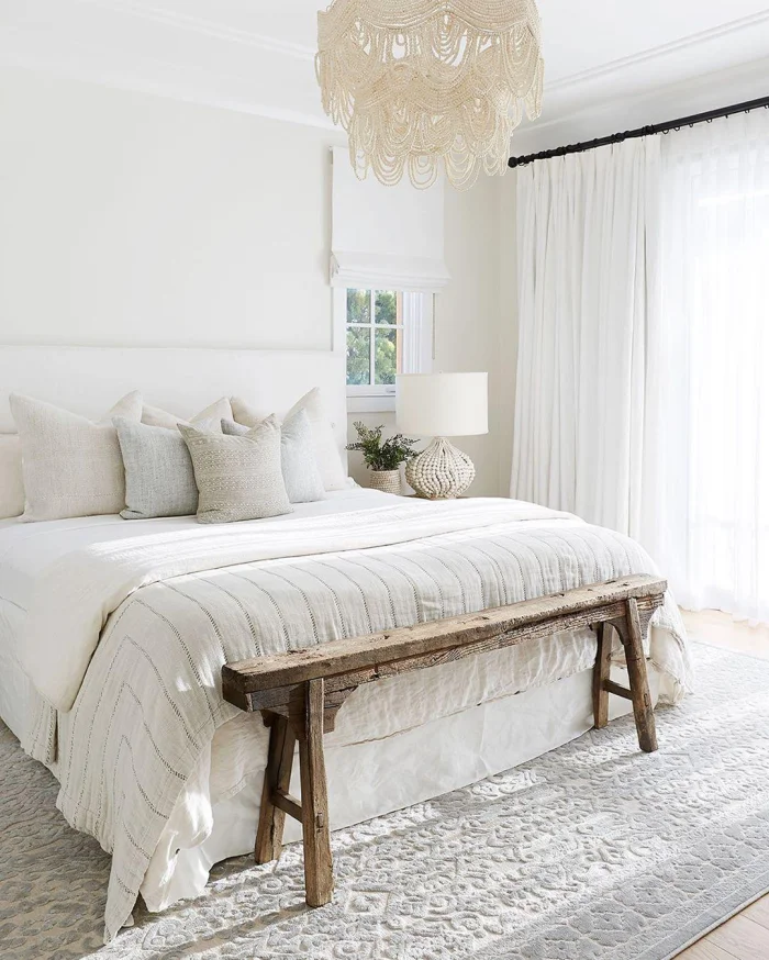 Белая вуаль или цвет шампанского — беспроигрышный вариант для спальни. Собранный в мягкие складки, он создаёт романтичное, расслабляющее настроение.