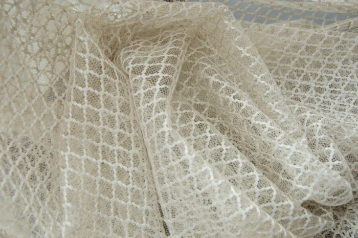 Ткань с рельефным, часто сложным узором. Выглядит дорого и солидно. Жаккард может быть матовым или с лёгким блеском, однотонным или с рисунком. Он прочен, долговечен и прекрасно комбинируется с другими видами тюля, например, с гладкой вуалью.