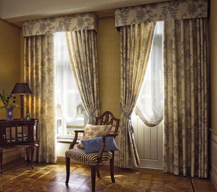 Если тюль с рисунком, портьеры должны быть однотонными. И наоборот: узорчатые шторы требуют гладкого фона.