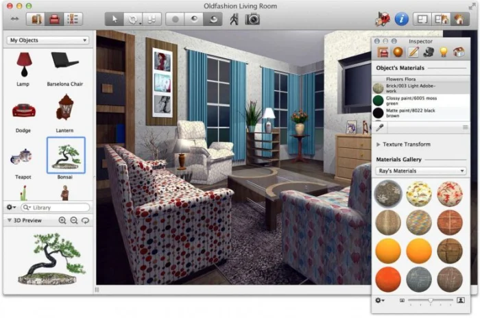 Одна из старейших и уважаемых программ в своей нише. Позволяет создавать проекты любой сложности, а затем отправиться в виртуальный тур по готовой квартире. Выбирайте материалы для стен, пола, форму окон и дверей — здесь есть всё для детальной проработки.