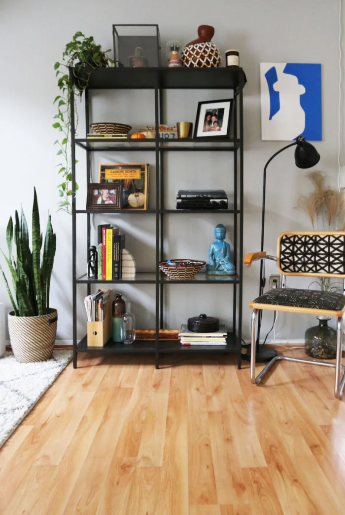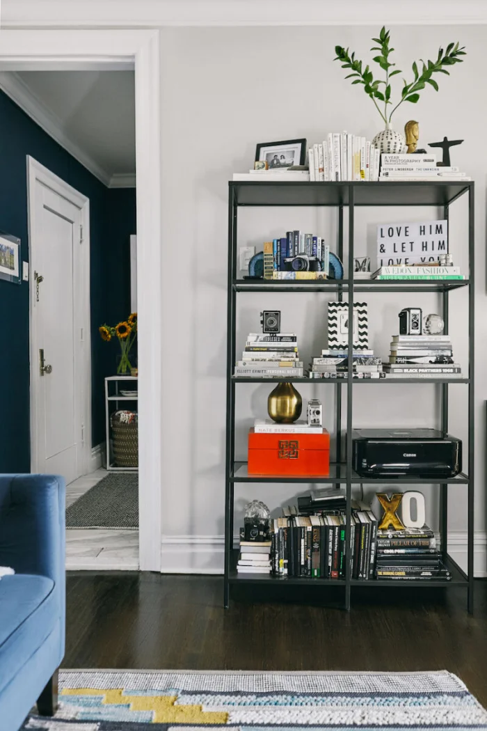 Часто именно гостиная, как самая просторная комната, берёт на себя функцию хранения. И это логично.