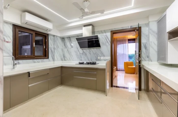 Ваш секретный инструмент — отражающие поверхности. Глянцевый натяжной потолок, зеркальная панель, фасад кухни с глянцевым акрилом — все это работает как оптический иллюзионист, умножая пространство и свет.