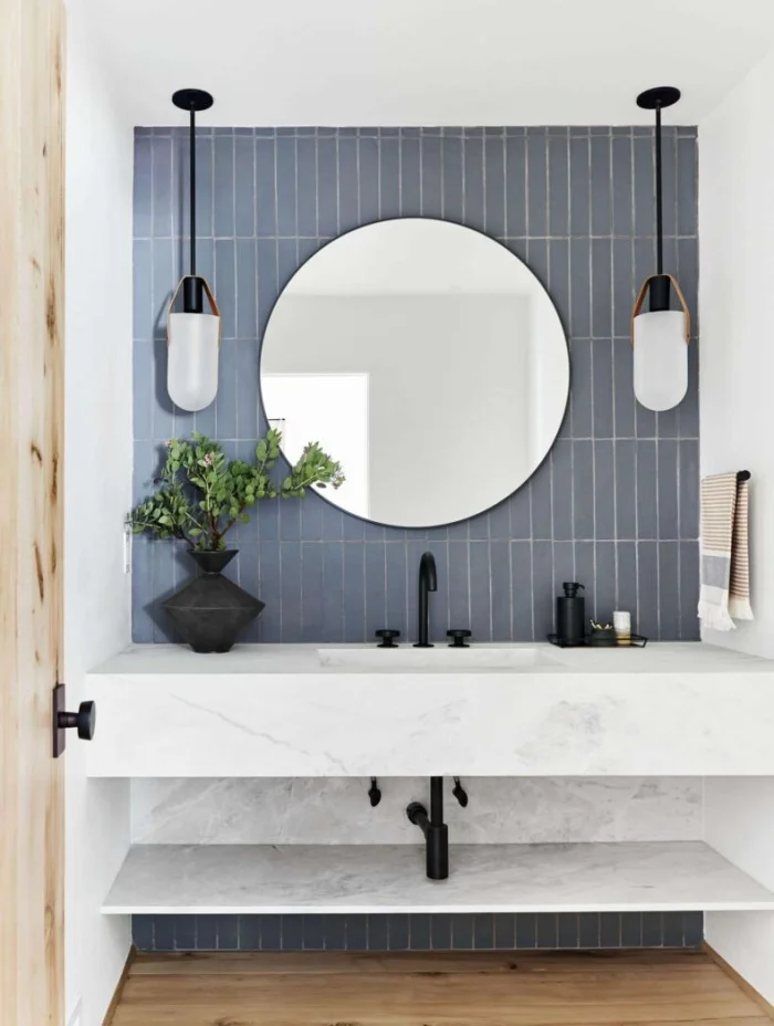 - Обязательно — хороший свет над зеркалом у раковины (по бокам или сверху).