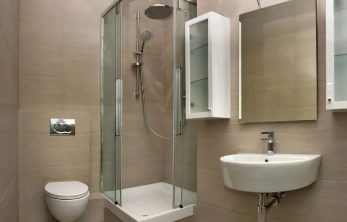 - Что в приоритете — ванна или душ? Будем честны: большинство из нас принимает душ. Полноценная ванна съедает уйму места. Душевая кабина или, что еще лучше, компактный гидробокс (та же кабина, но с расширенным функционалом) — разумная альтернатива. А что насчет унитаза и раковины? Без них, увы, никуда.