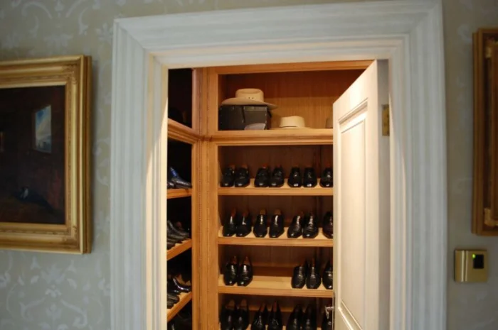 - Крючки и мини-рейлинги на боковых стенках или дверцах. Идеально для галстуков, ремней, шарфов и шапок. Мелочь, а порядок наводит.
