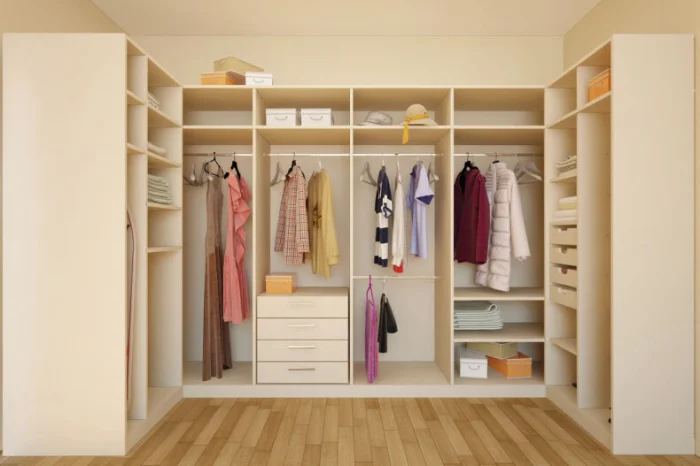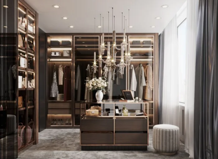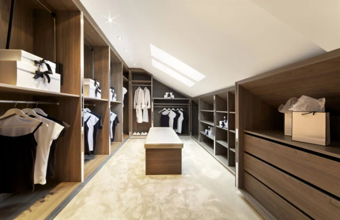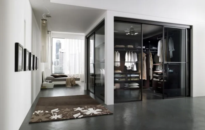 Гардеробная должна быть изолирована. Это защитит вещи от пыли, кухонных запахов и просто позволит поддерживать в ней свой, особый микроклимат. Вариантов несколько: