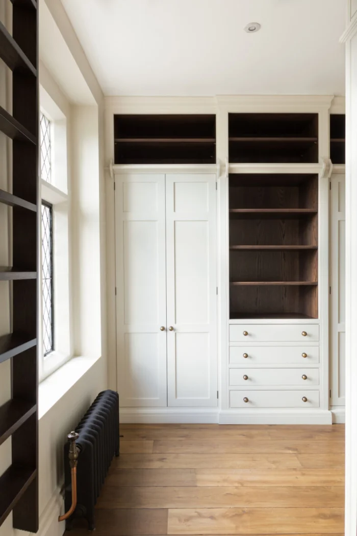 Золотое правило: глубина и высота полок должны соответствовать тому, что на них будет храниться. Нет ничего раздражающее, чем коробка, которая не влезает по глубине на 2 сантиметра.