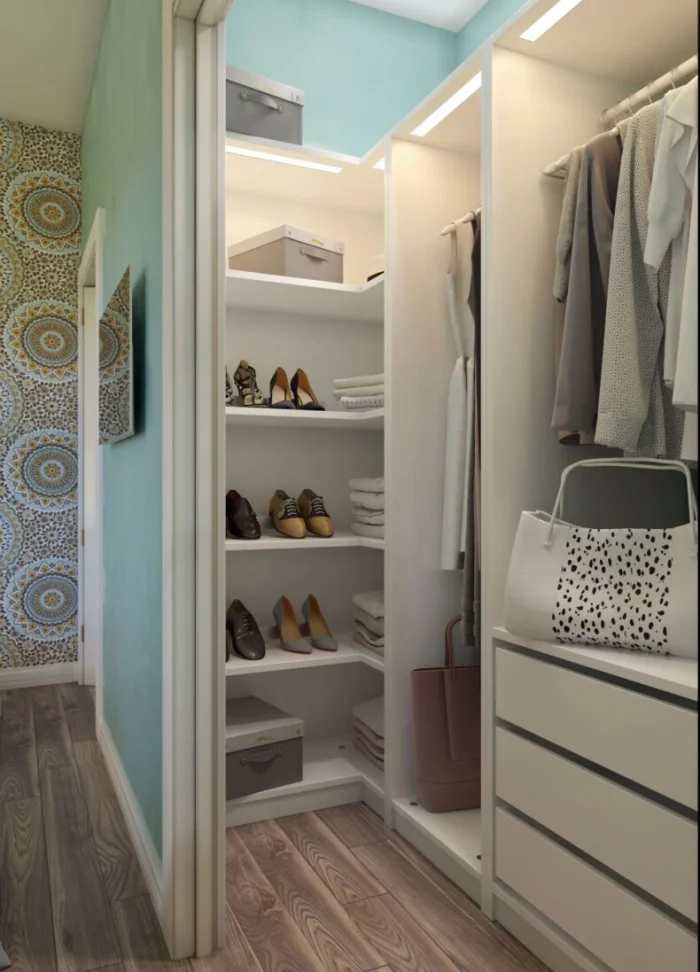 Главная фишка гардеробной — не красивый фасад, а продуманное наполнение: полки, шкафы-купе, вешалки, ящики. Ее можно организовать в отдельной кладовке, отгородить угол в спальне или даже использовать нишу в прихожей. Главное — подход!