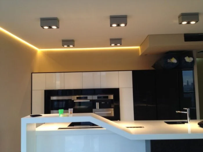 Давайте пробежимся по основным способам «оживить» потолок светом: