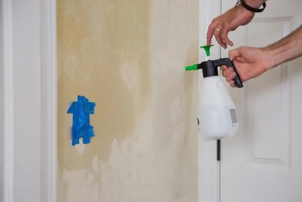 - Размочите покрытие (лучше использовать пульверизатор и небольшие участки).