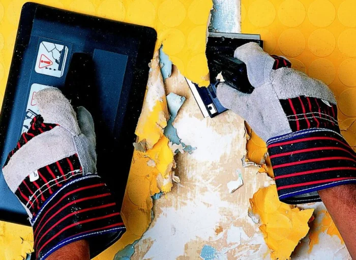 Элегантный и эффективный метод. Парогенератор (или мощный отпариватель) направляют на стену. Горячий пар за секунды проникает вглубь, размягчая самый стойкий клей.