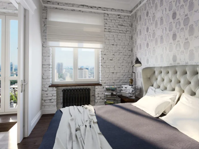 - Сохраняйте баланс. Если на акцентной стене сложный динамичный узор, мебель рядом должна быть максимально простой.