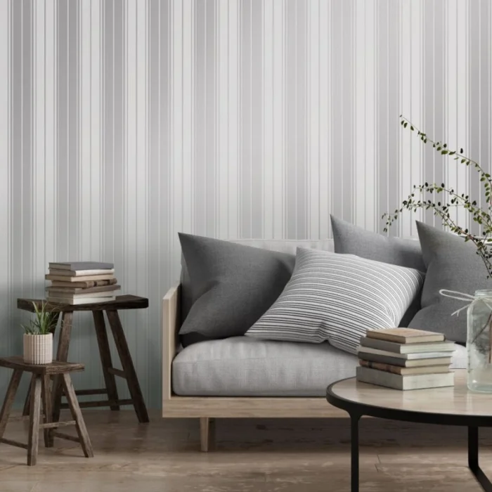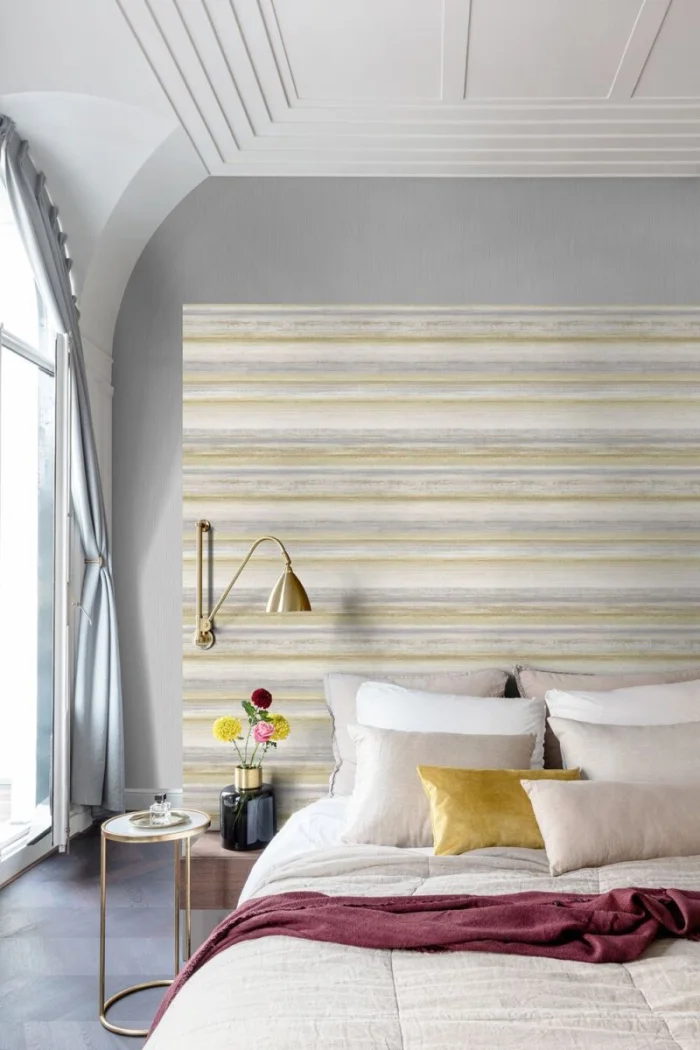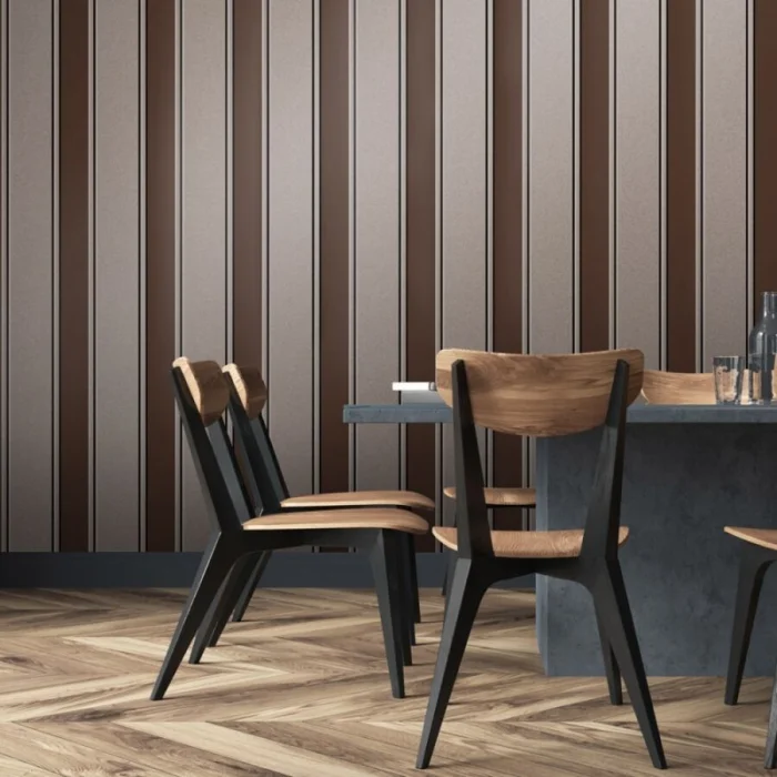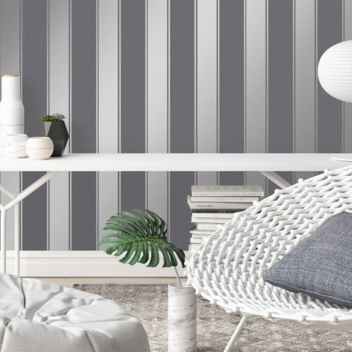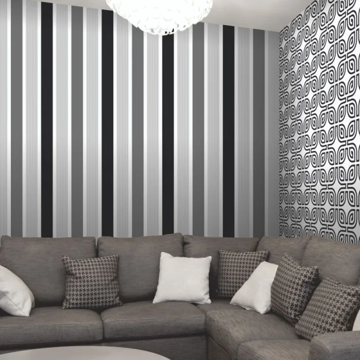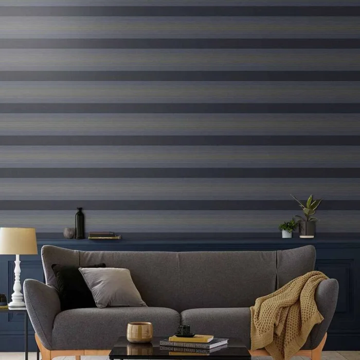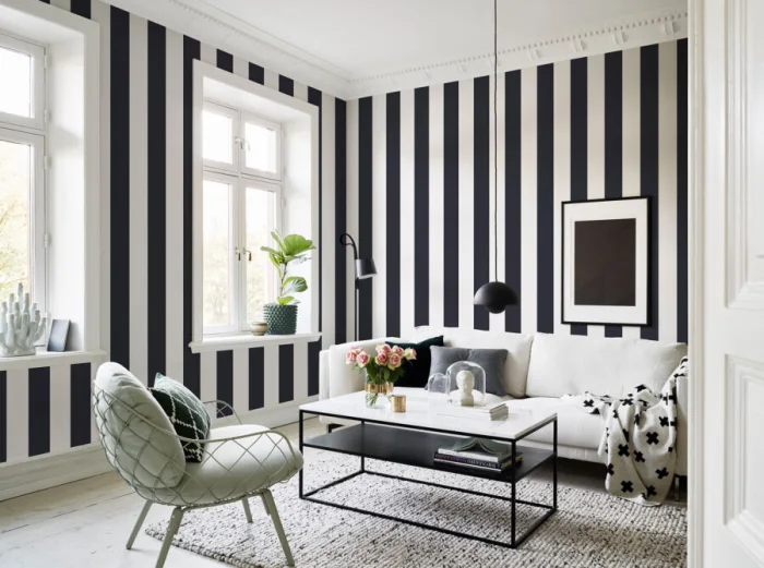А вот с узкими полосками — история иная. Частый, динамичный ритм. Он может будоражить, а может и утомлять, если оклеить все стены. Поэтому тонкую полоску лучше использовать дозированно — например, выделить одну акцентную стену. Иначе есть риск получить эффект визуальной «дрожи».