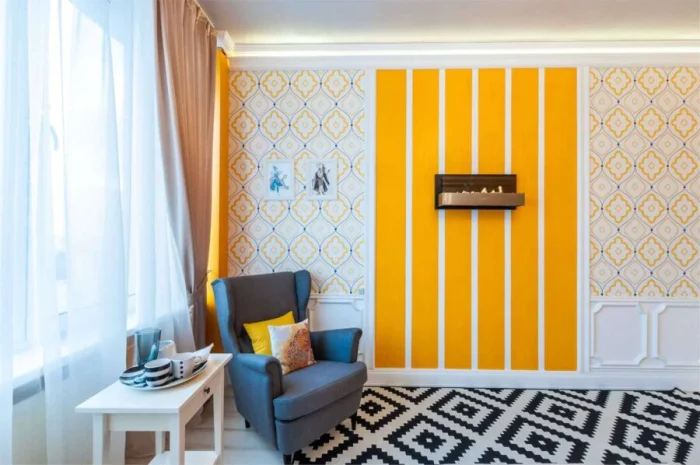 - Маскировка недостатков. Неидеальная поверхность? Полоски отвлекут внимание.