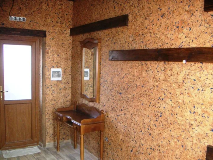 Пробка отлично дружит с другими материалами: текстильными, флизелиновыми, виниловыми обоями. Главное — подогнать толщину, чтобы не было резких перепадов.
