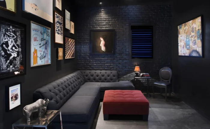 - Темный как фон. Хотите выделить дорогой диван, камин или картину? Темная стена выступит идеальным фоном, как в художественной галерее. Все внимание — на объект.