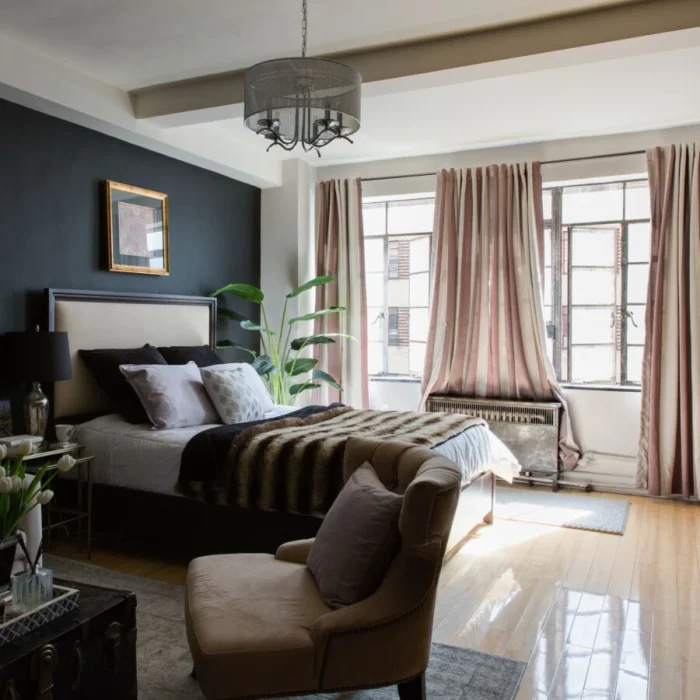 Самый простой и безопасный способ внести изюминку — сделать темной только одну, акцентную стену. Остальные пусть остаются светлыми, чтобы «отражать» и уравновешивать темноту. Идеальные компаньоны для темного акцента: