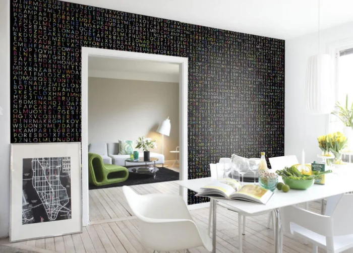 Черные обои — выбор для смелых. Они создают загадочную, элегантную и невероятно современную атмосферу. С графичными принтами они и вовсе способны преобразить комнату до неузнаваемости.