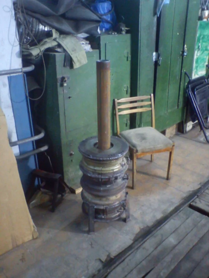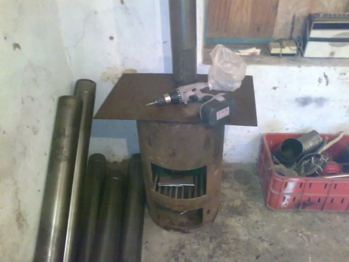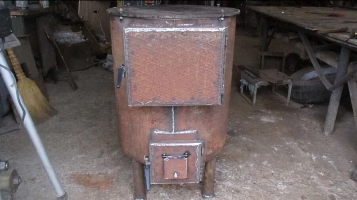 - Отслужившей свой срок железной бочки — идеальный вариант для гаража.