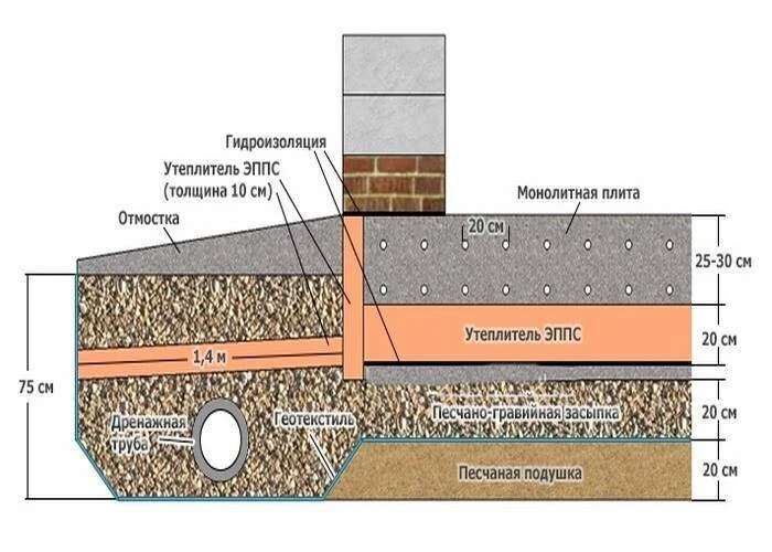 - Монолитная плита. Проще, чем УШП, но принцип тот же: ровное, дренирующее основание под всей площадью дома.
