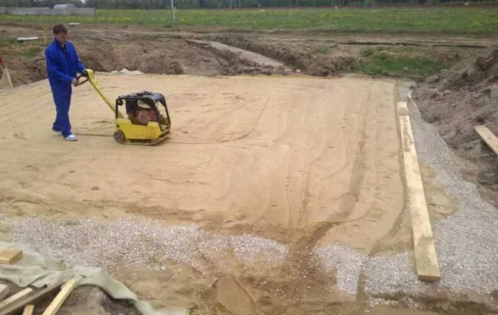 Мы уже говорили о трамбовке щебня. С песком — та же история, только еще важнее. Неуплотненный песок даст усадку до 20% своей высоты! Представьте, что будет с фундаментом.