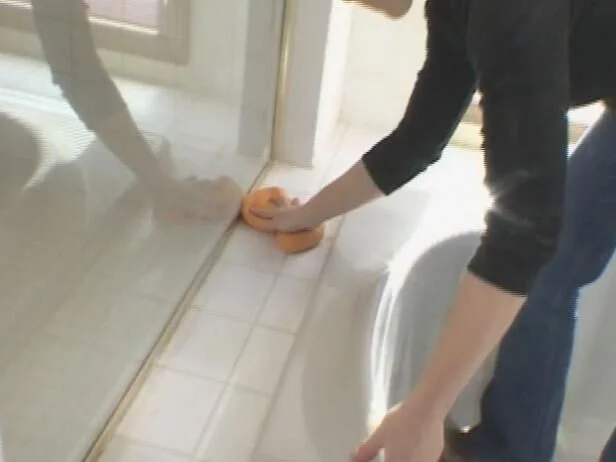 - Берём слегка влажную целлюлозную губку и круговыми движениями начинаем «формировать» шов, снимая излишки. Не давите сильно!