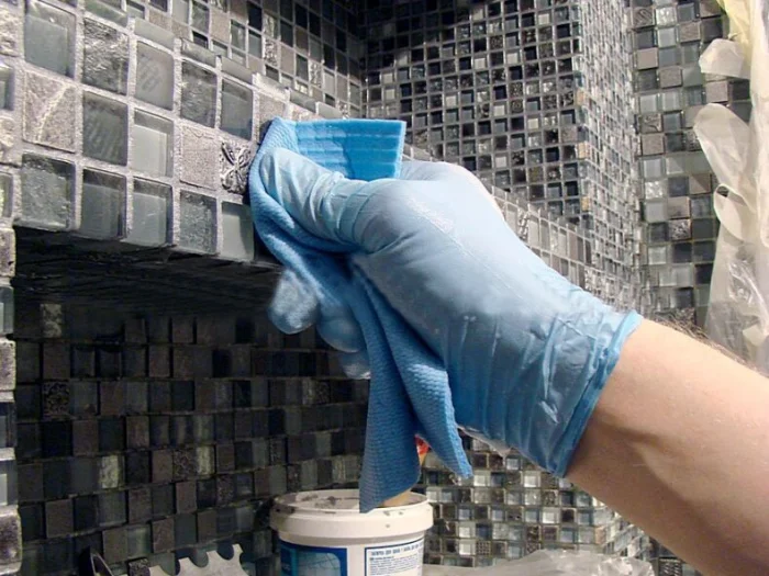 Средство типа Litokol Gel — ваш лучший друг в финале. Для глянцевой плитки его разводят в воде, для матовой можно использовать концентрат. Нанесите на губку, обработайте поверхность и... увидите, как плитка засияет.