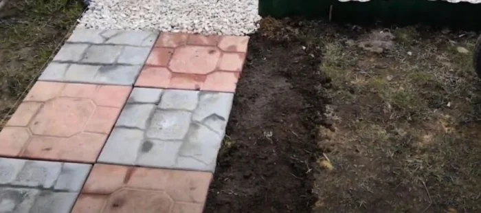 Совет: прежде чем начинать, выложите несколько рядов плитки «на сухую», без раствора. Это поможет наглядно оценить рисунок, подогнать ширину дорожки и понять, сколько и где нужно резать.