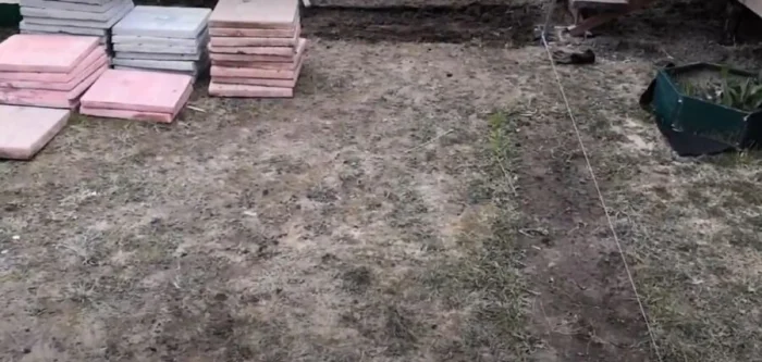 Не пренебрегайте этим этапом! Вбейте колышки по углам будущей дорожки и натяните между ними шнур. Сразу закладывайте ширину с учётом бордюров (добавьте по 10 см с каждой стороны). Проверьте углы и параллельность линий. Хорошая разметка — залог ровной дорожки.