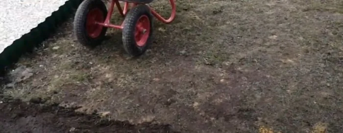 Нужно вынуть грунт на глубину всего «пирога». Для пешеходной дорожки это примерно 25-30 см. Дно траншеи должно быть ровным и иметь небольшой уклон (примерно 1 см на метр) для стока воды. Тщательно утрамбуйте земляное дно. Это важно!