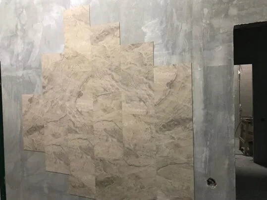 Важный нюанс! Плитка гибкая, а значит, она повторит все изъяны стены. Поэтому выравнивание — обязательный этап. Ещё один совет: перед монтажем дайте материалу «акклиматизироваться» в комнате, где будет производиться укладка, в течение 2-3 суток.