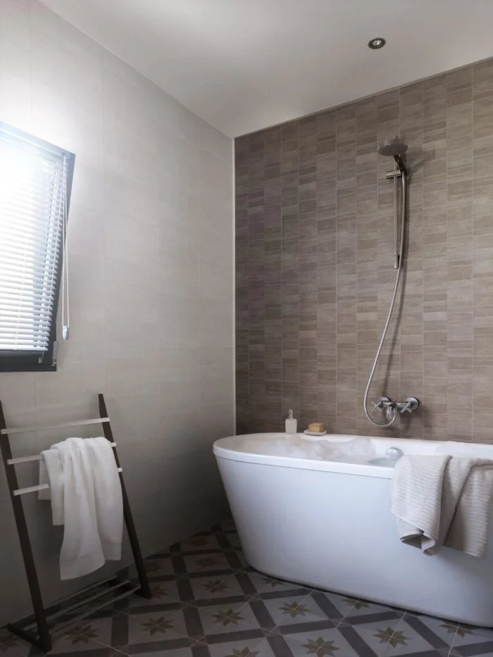 Гибкость — вот главный козырь ПВХ плитки для сложных поверхностей. С её помощью можно обыграть ниши, выступы, скруглённые углы или даже фальш-камин.