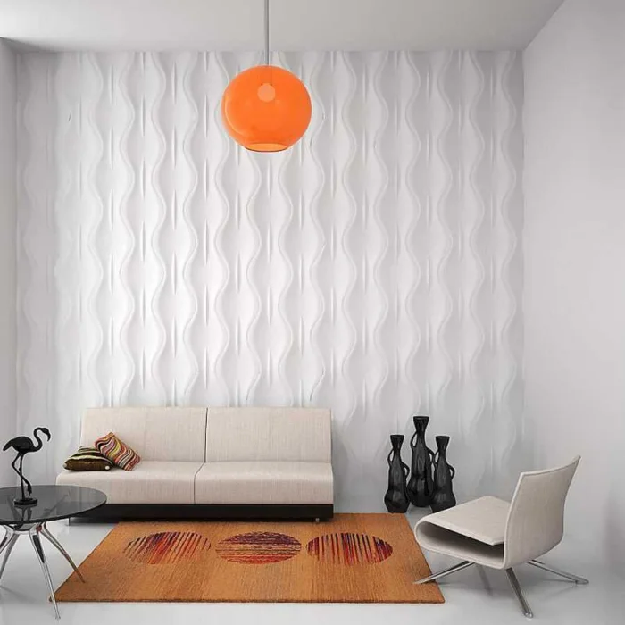 Если хотите по-настоящему современный и эффектный интерьер — присмотритесь к 3D-панелям. Они делаются из разных материалов: