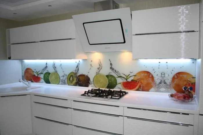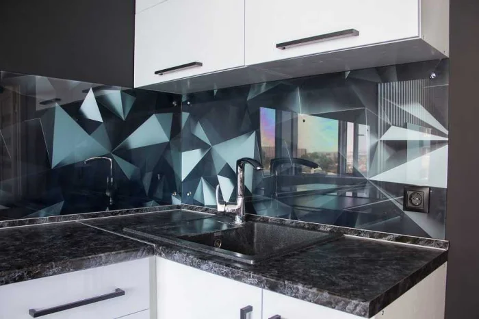 Классика для кухонного фартука. Стеклянная панель с 3D-эффектом способна преобразить самую обычную кухню, добавив ей стиля и глубины.