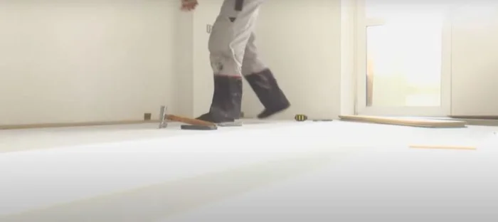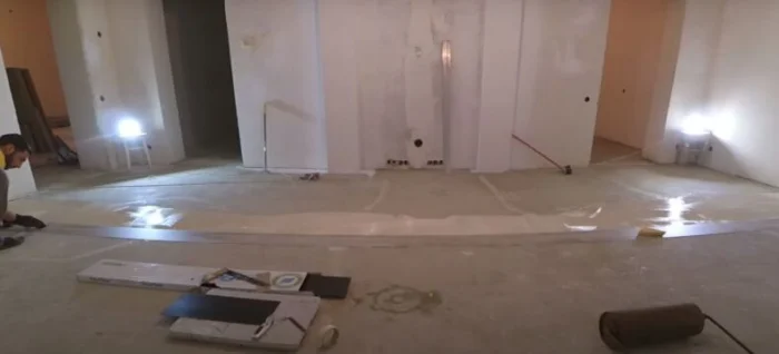 Если у вас тёплый пол, отключите систему за сутки до начала работ. В комнате должно быть чисто, сухо, проветрено. Оптимальная температура — от +18°С до +26°С, влажность — умеренная.