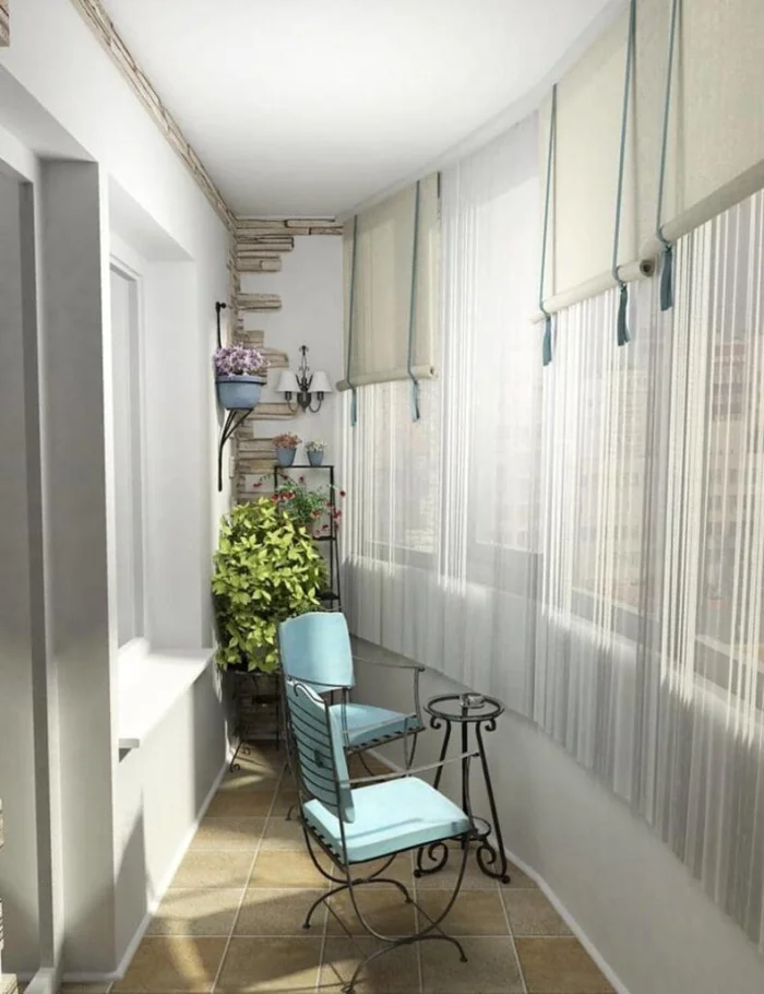 Вариантов фактур и цветов — сотни: от грубого дикого камня до гладкого мрамора. Для маленького балкона лучше выбрать светлые оттенки — они не будут «давить».