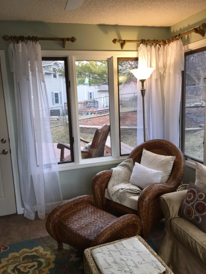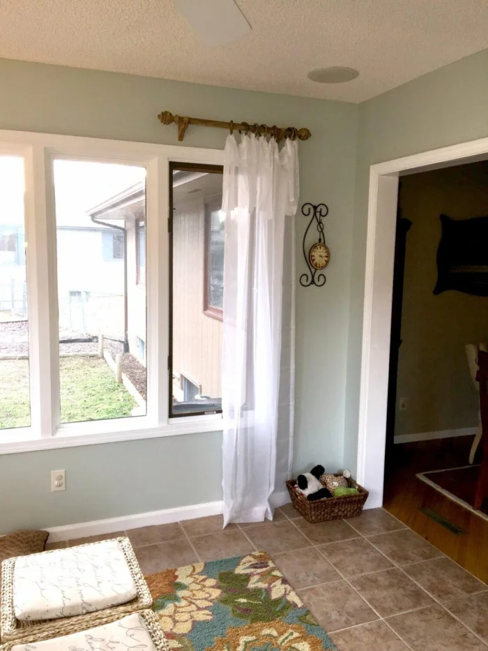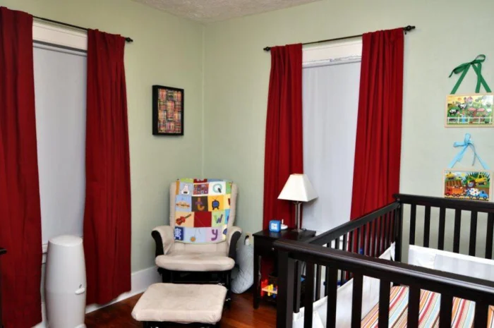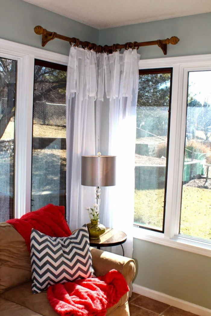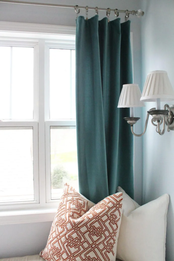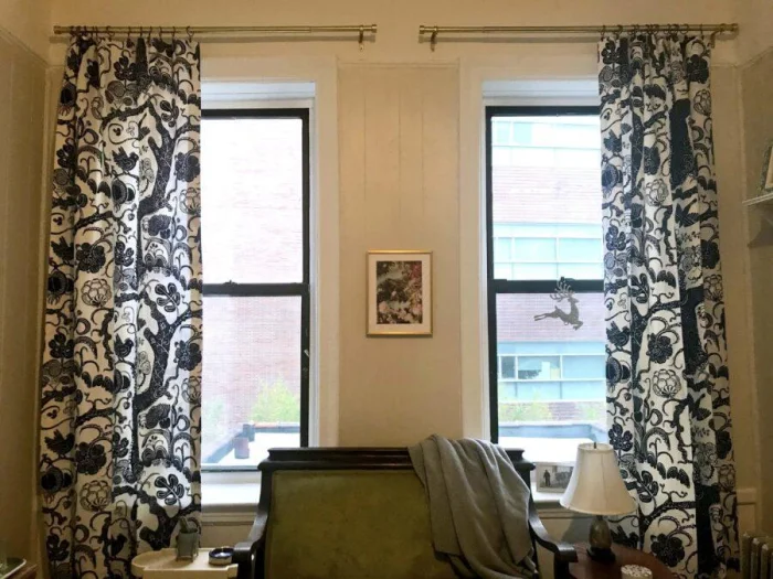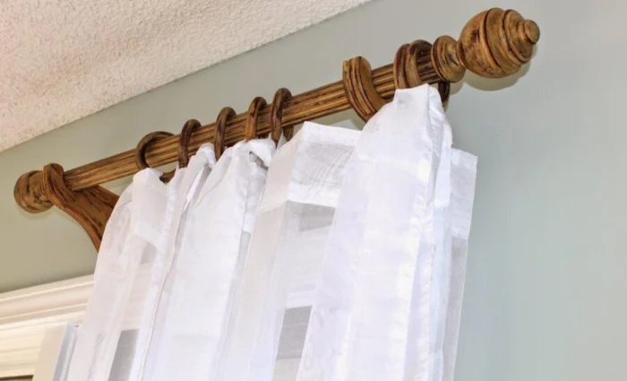 - Карниз должен быть шире окна. Шторы должны выступать за его границы с каждой стороны. Так окно зрительно становится больше.