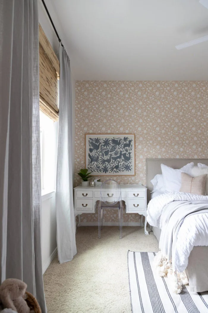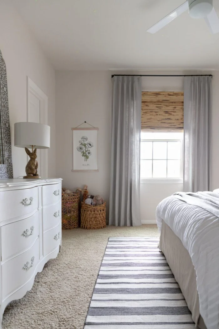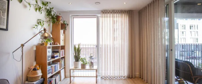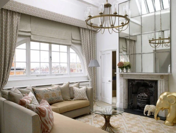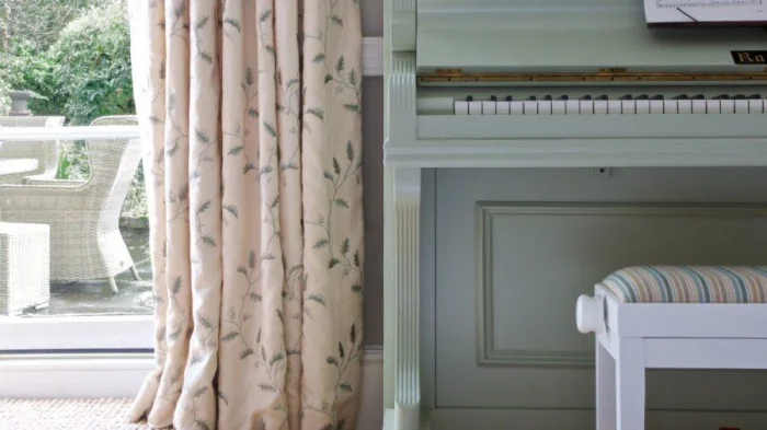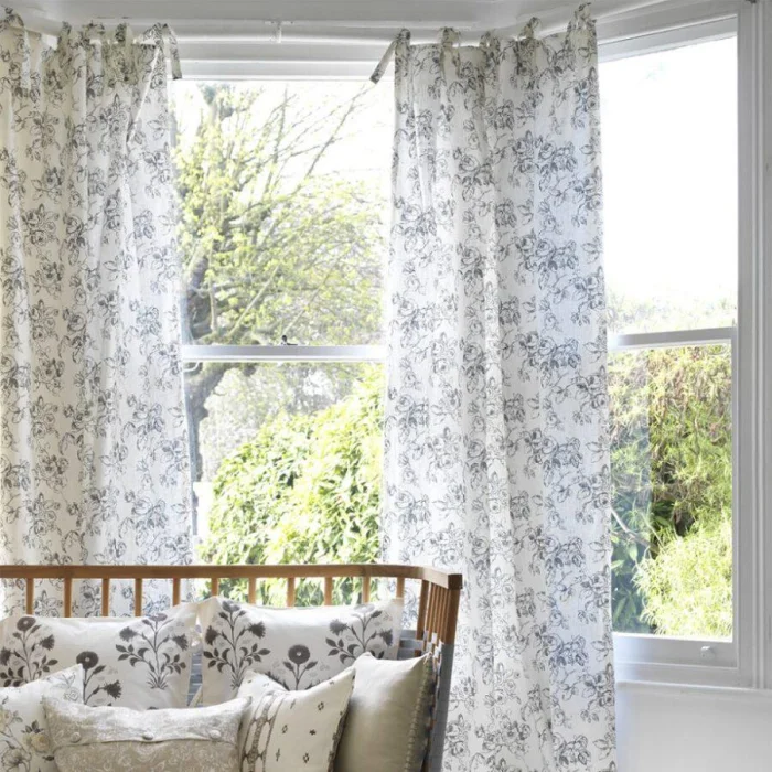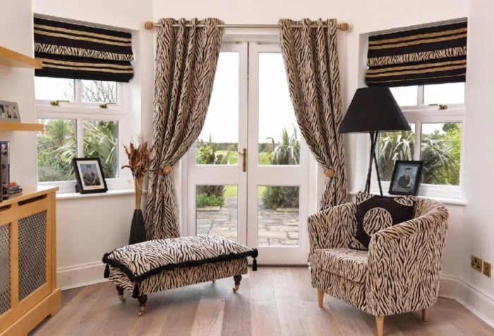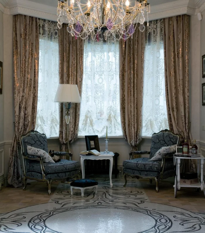 Хотите визуально приподнять потолок? Секрет прост: длинные, строго вертикальные шторы от самого карниза до пола, без зазоров. А если выбрать ткань, которая мягко ложится в напольные складки, комната ещё и «раздвинется» в ширину. Двойной эффект!