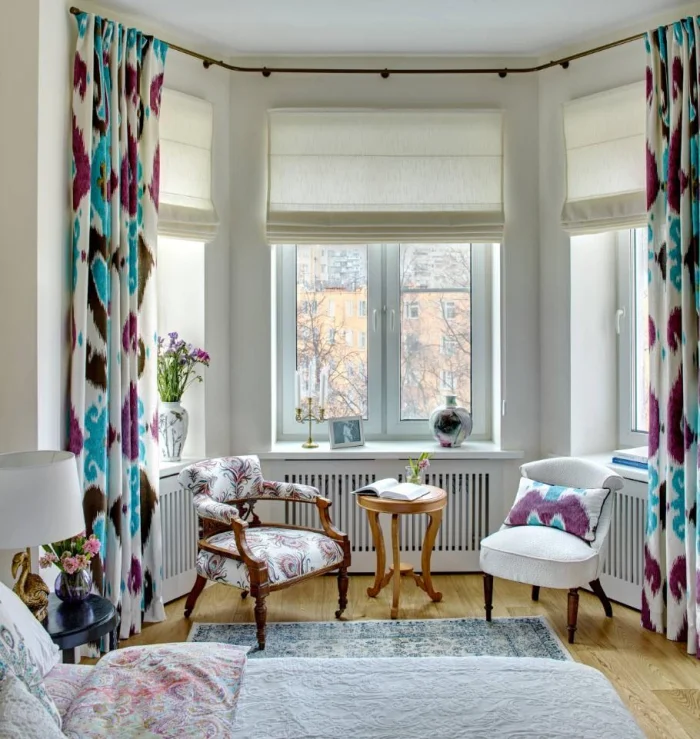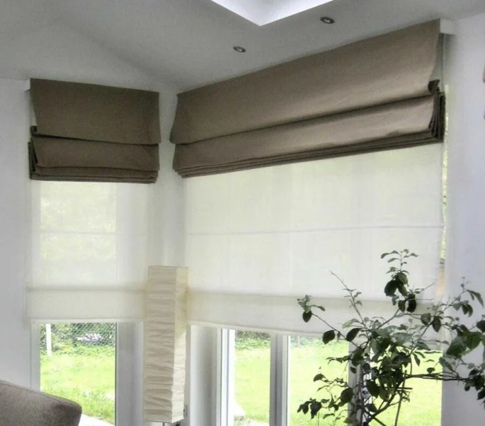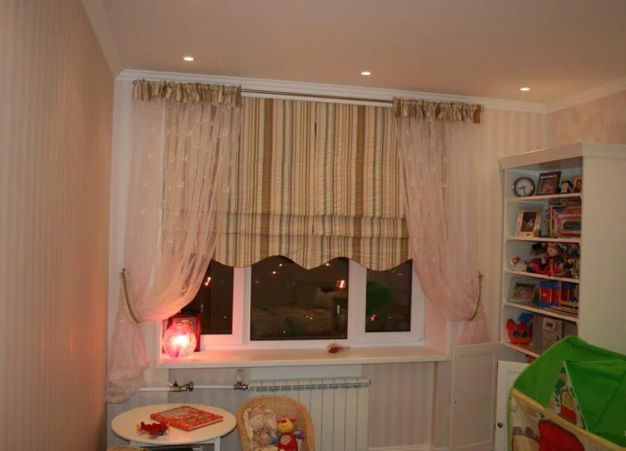 Соблюдая эти два условия, вы получите тот самый эффект простора и гармонии. Эту же задачу решает комбинация с римскими шторами, которые закрывают пространство над окном.