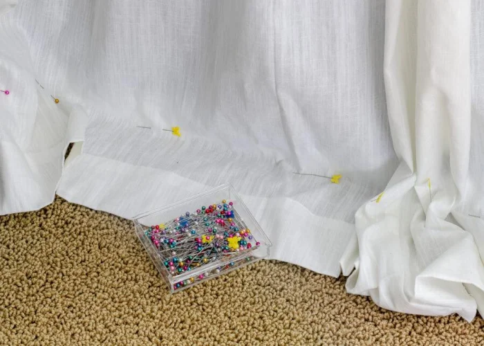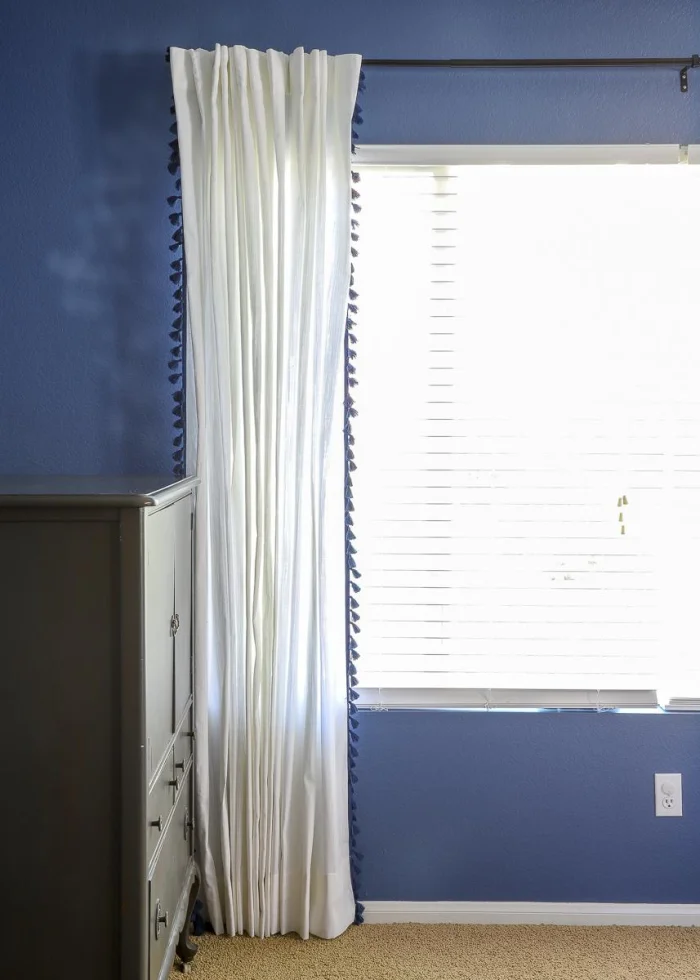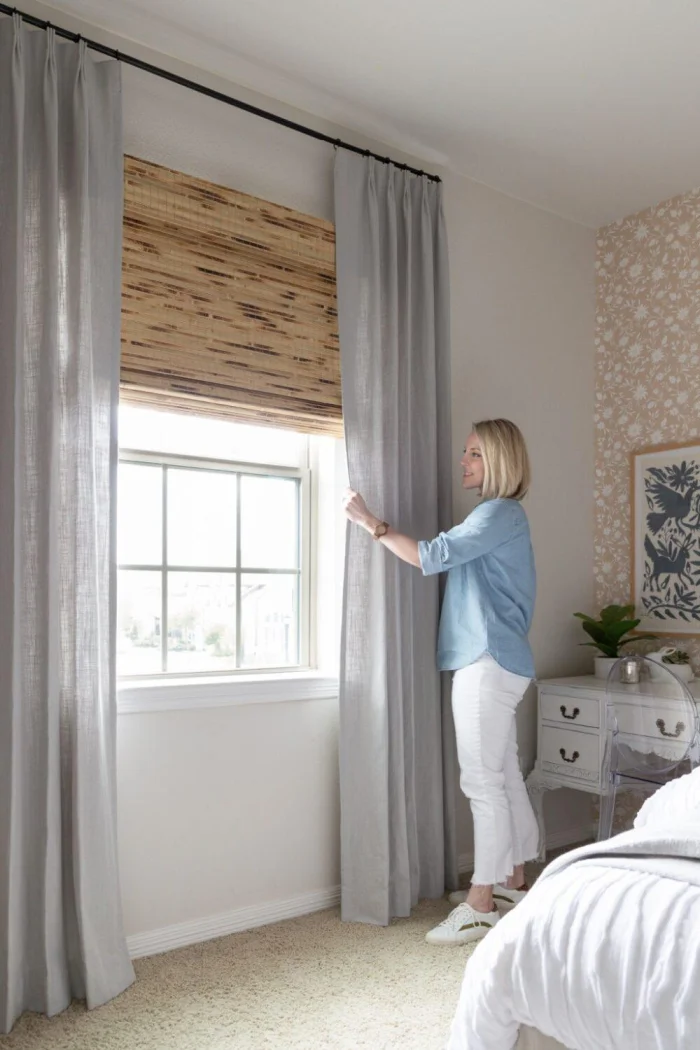 Затягивайте шнур ленты аккуратно. Слишком тугой перехват сделает штору не элегантной, а будто задыхающейся. Нужна лёгкая, непринуждённая форма.