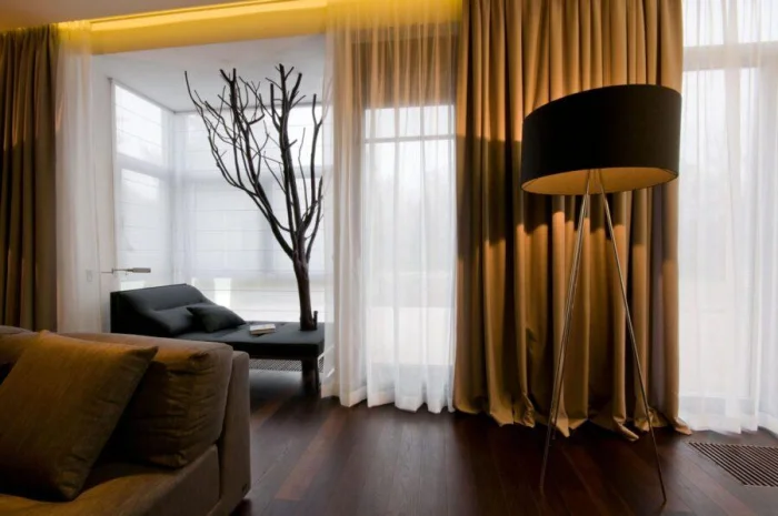 Современный дизайн любит чистые линии и многофункциональность. Например, комбинации. Кто сказал, что нельзя сочетать рулонную штору с лёгкой портьерой? Можно! И получается потрясающе: практичность в тандеме с лёгкостью.