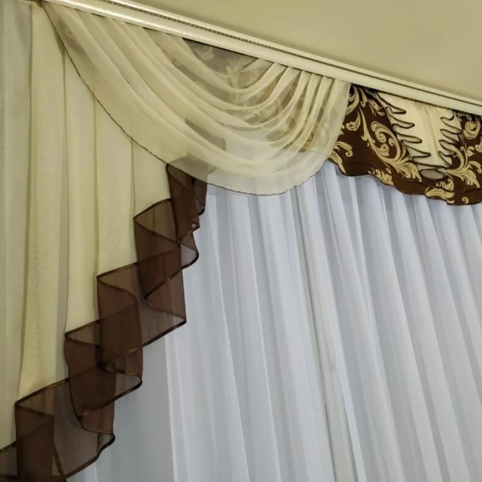 - Ламбрекен – тёмный шоколад, в цвет окантовки тюля.