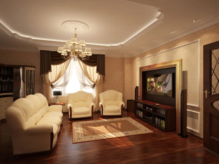 Важно! Выбирая фасон, помните о чувстве меры. Перебор с оборками и золотом мгновенно превратит вашу гостиную в декорацию к пьесе о жизни французской куртизанки или, что ещё печальнее, в зал провинциального кафе. Нам это не нужно, правда?
