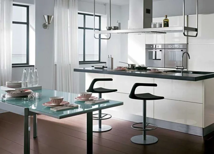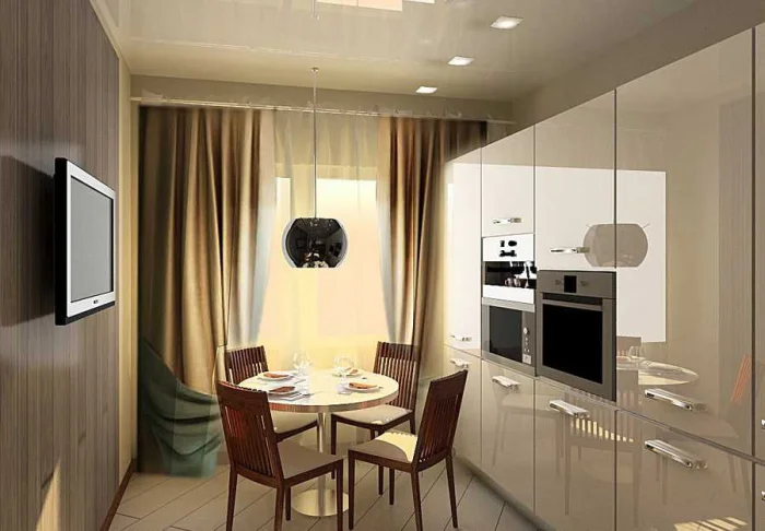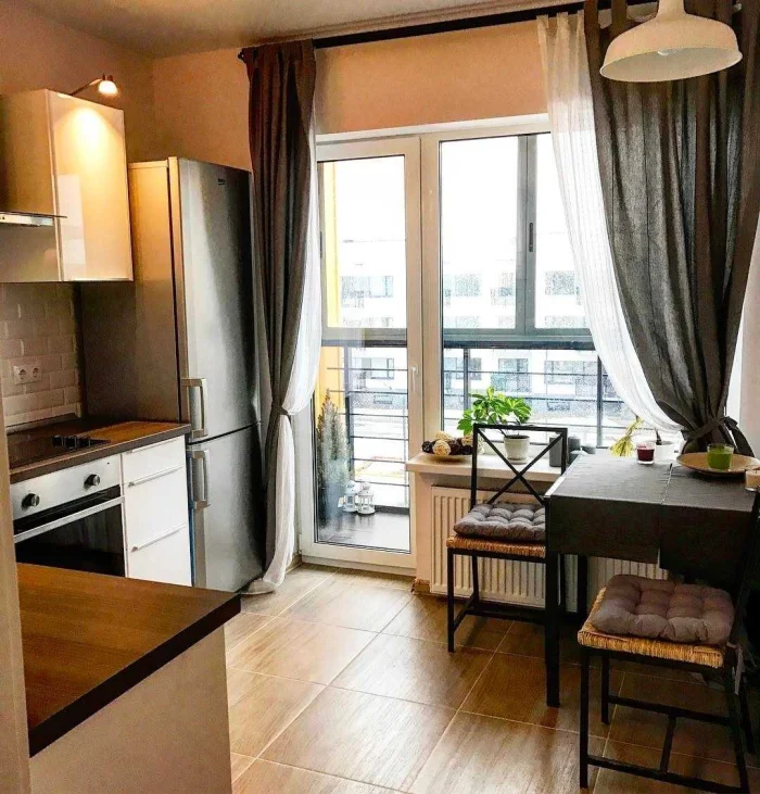 Модель занавесок должна следовать общему стилю кухни. В минималистичном пространстве пышная классика будет выглядеть чужеродно, и наоборот.