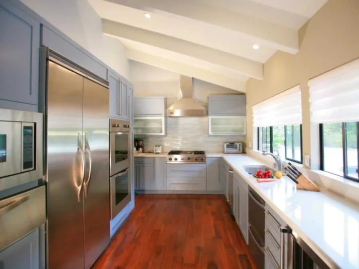 Выбор цвета зависит от трёх вещей: дизайна кухни, её размера и того, куда выходят окна. Грамотно подобранный оттенок может скорректировать пропорции и настроение комнаты.