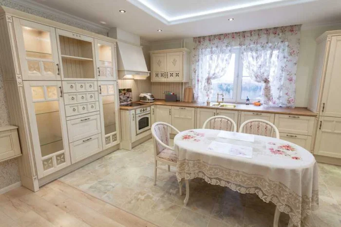 Кантри — стиль более грубоватый и разнообразный. Изучите, какой именно национальный колорит вы хотите получить. Но основа всегда одна: натуральные материалы (лён, хлопок) и цвета природы.